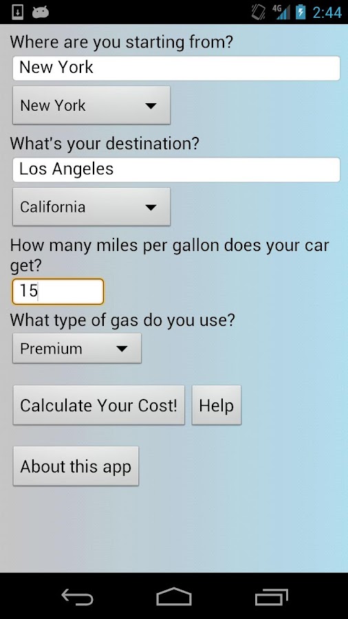 Basic trip cost Trip Cost Estimator miles Type the number of miles (round trip) you will travel How much does a gallon of gasoline cost? How many miles per gallon does your vehicle usually get? ... Doc Retrieval
