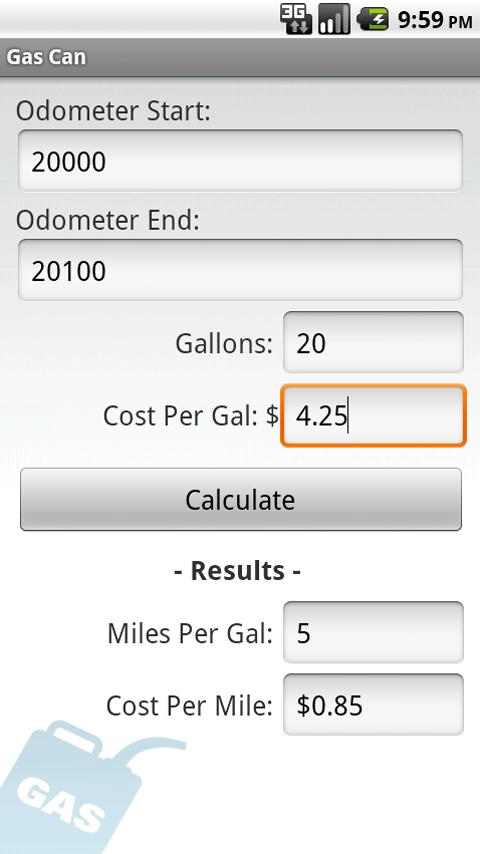 Fuel consumption calculator mm/dd/yyyy dd/mm/yyyy miles gal $/gal miles/gal Cost of the mile Don't use the partial mileage data. Estimated cost. The fuel consumption will be calculated only when the tank is completely filled. ... Read More