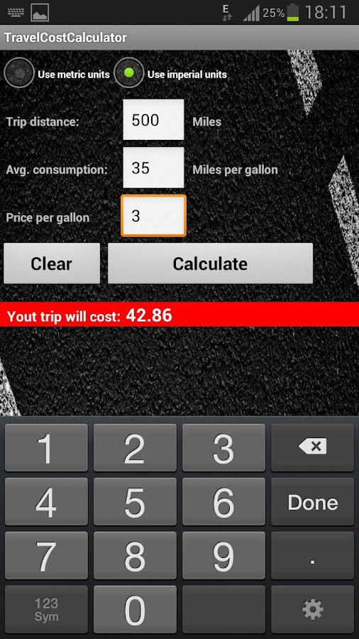 Step 4 - The above programs will figure the trip time and distance. If your car gets 25 miles per gallon and gas costs an average of 1.70 per gallon, how much will the gas for your trip cost? Hint. MATH LESSON PLAN ... Document Retrieval